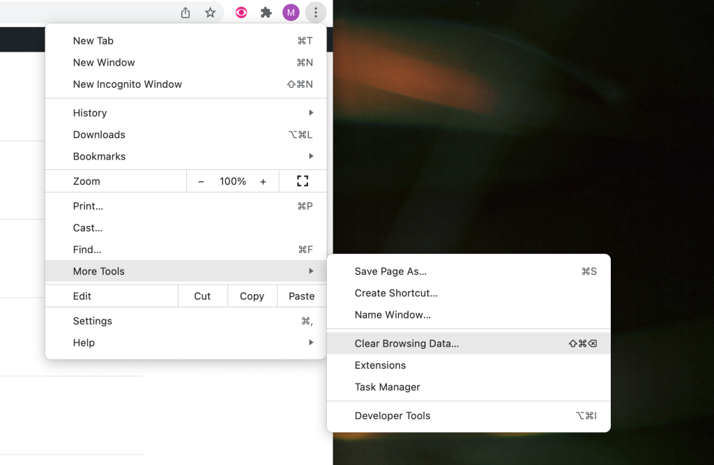 Then select the ‘More tools’ option and then ‘Clear browsing data’
